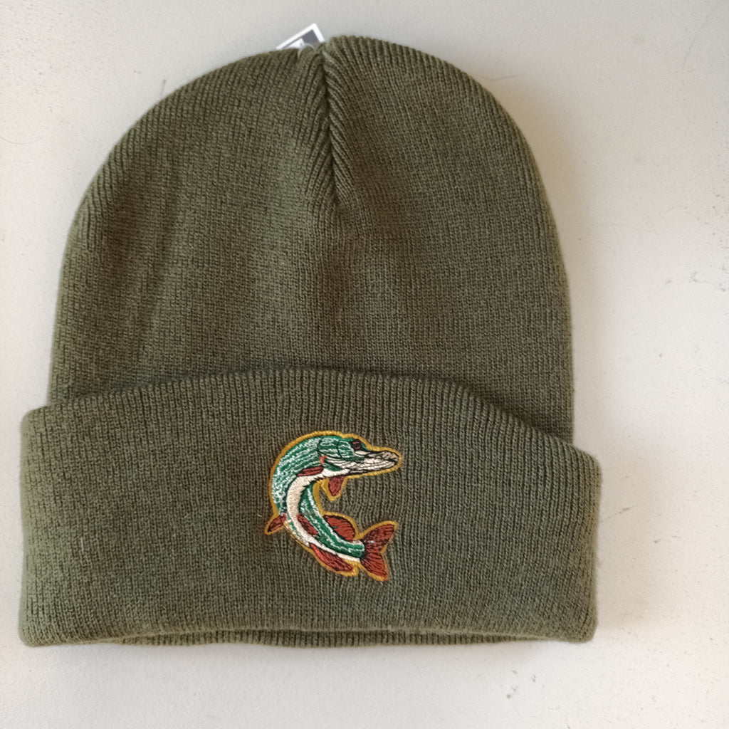 Beechfield Fishing Beanie Cap with Embroidered Pike Motif