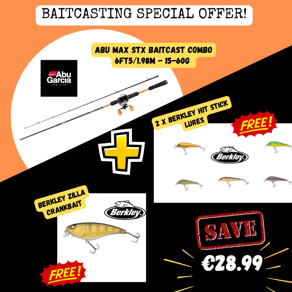 Another unbelievable deal from Kevin - this time, the super-popular Abu Baitcasting Rod+Reel, PLUS a FREE Spool of Leeda Braid, a FREE Leeda Tackle Bag, FREE Savage Gear Half-Finger Gloves and a FREE Berkley Dredger Lure - *combined value of €68 worth of accessories absolutely FREE!!* Read on for details!