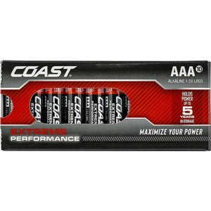 - Coast Extreme Performance AAA (LR03) alkaline batteries.