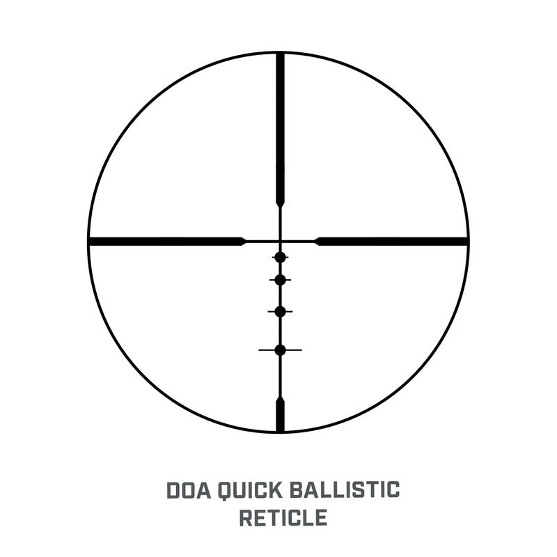 - DOA quick ballistic reticle for fast, accurate shots with any calibre that matches your typical hunting cartridges out to 500 yards.