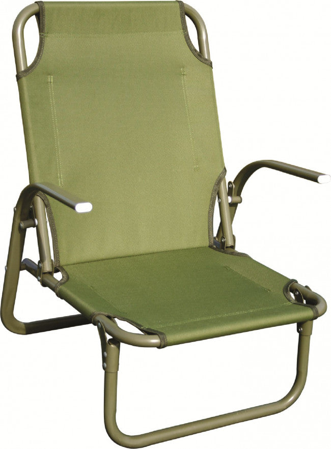 - Sturdy, comfortable, low-slung beach or garden folding armchair.