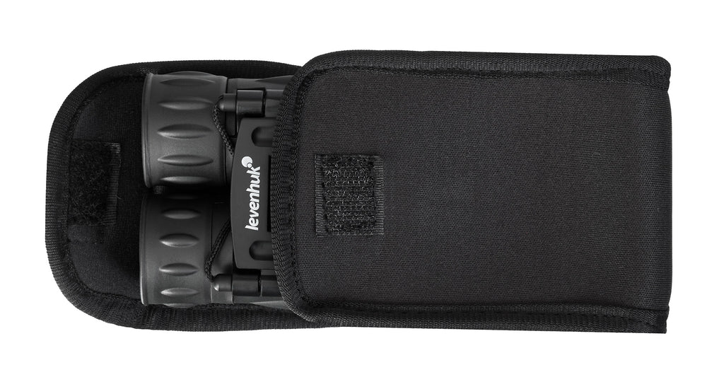 - The rubber coating of the shell securely protects Levenhuk Atom 12x25 Binoculars from mechanical shocks and prevents dust and dirt from getting inside the instrument.